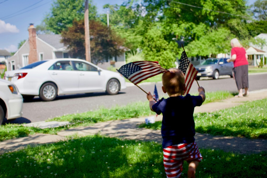 - Shake along to patriotic songs like “You’re a Grand Old Flag,” or create your own patriotic parade within your home!